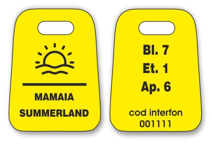 Brelocurile sunt realizate prin gravura din material plastic dublustrat.