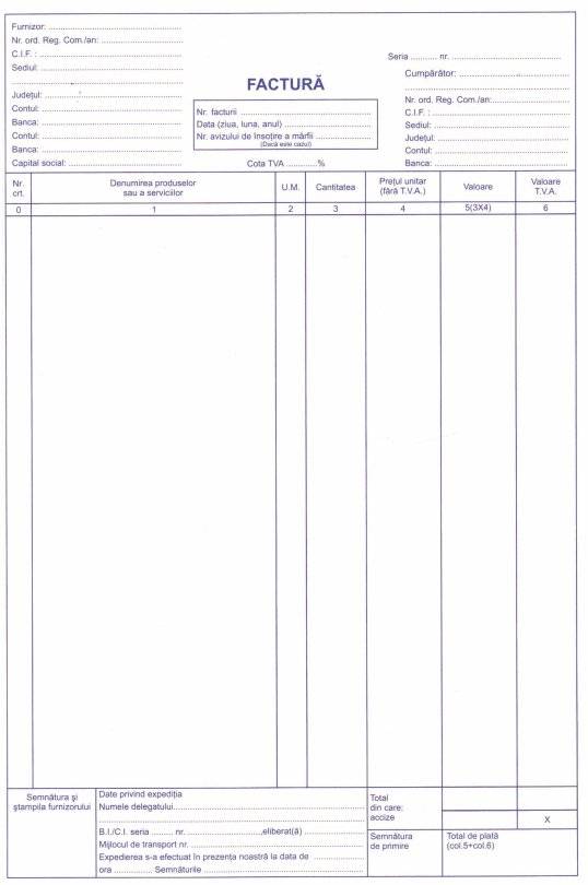 Facturier A4 cu TVA, 50 seturi x 3 exemplare, coperta carton, perfor