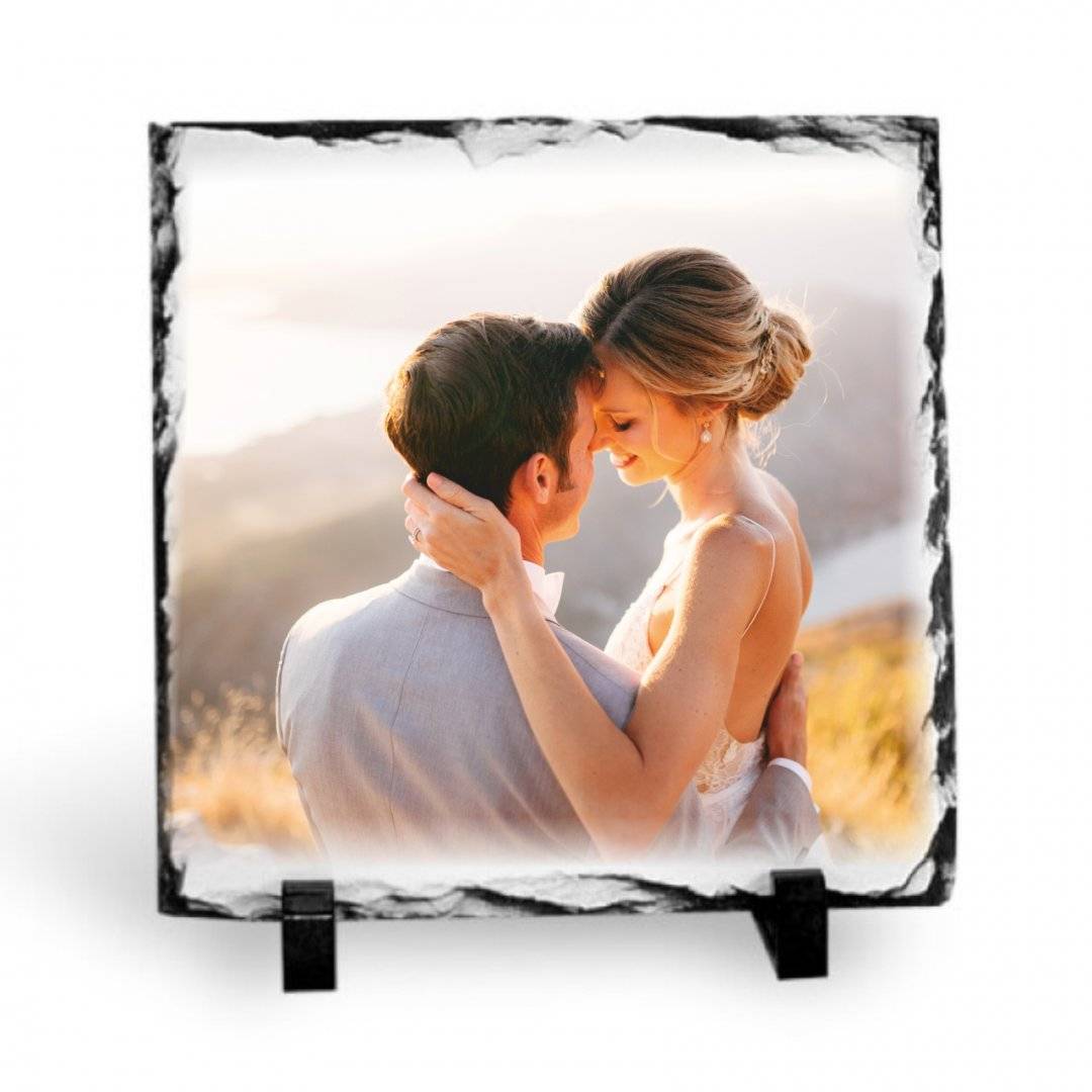 Placa de ardezie naturală, dimensiunea 20 x 20 cm, este un cadou elegant și original, ideal pentru momente speciale: nuntă, botez, aniversare sau decor personal.