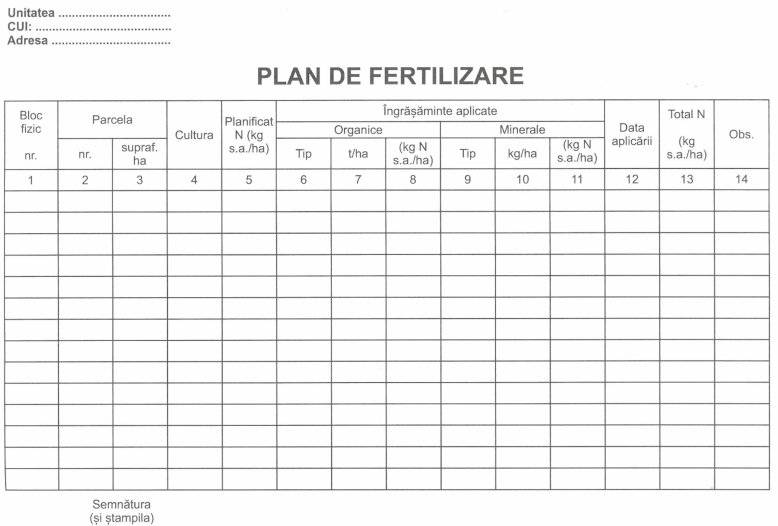 Plan de fertilizare, A4, 50 file, coperta cartonata