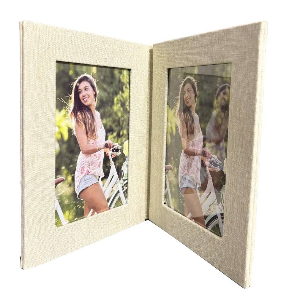 Ramă foto elegantă, realizată sub forma unei cărți, care se deschide și permite expunerea a două fotografii de dimensiunea 10x15 cm. Este ideală pentru a păstra împreună două amintiri dragi, într-un format deosebit și practic.