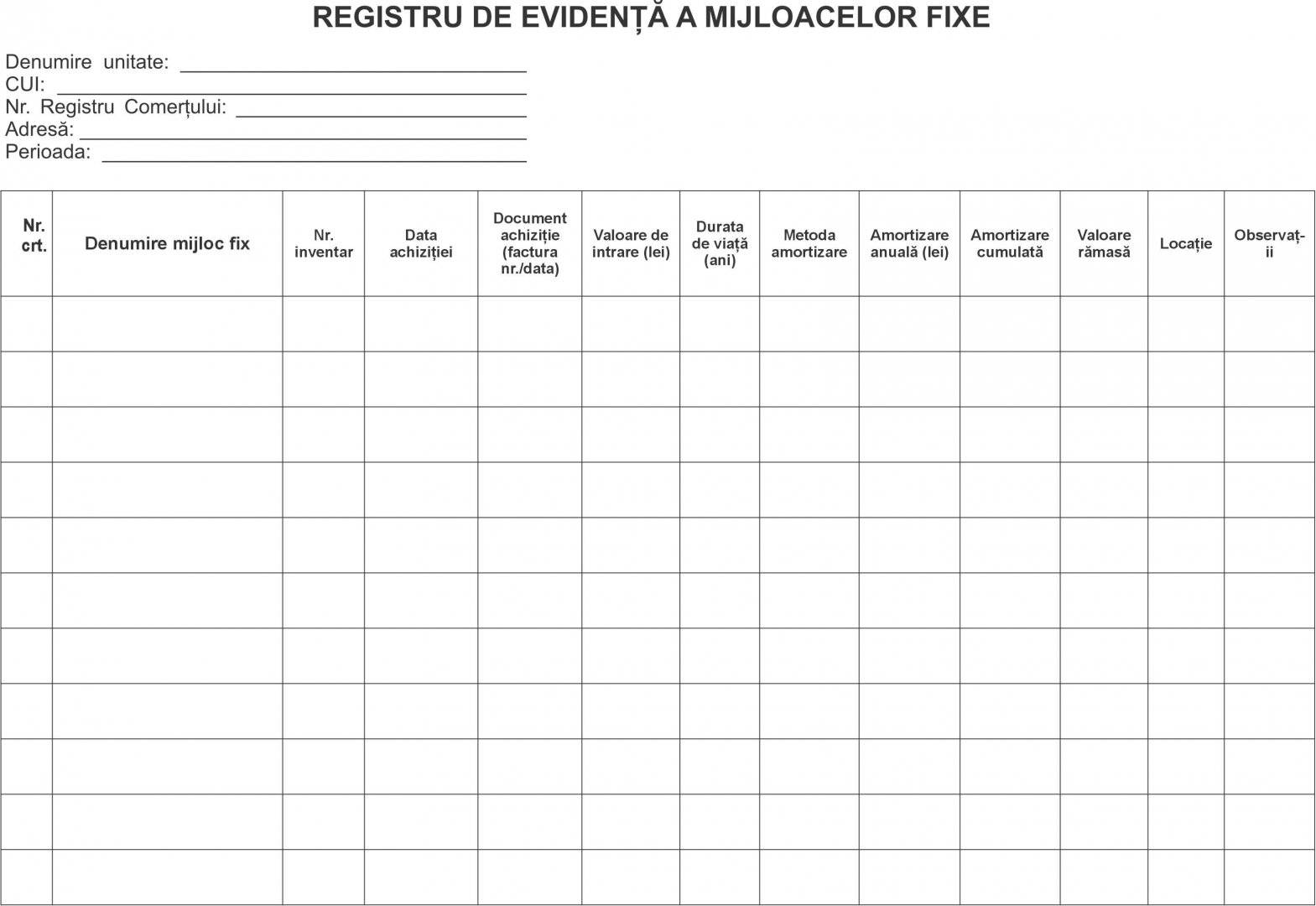 REGISTRU DE EVIDENȚĂ A MIJLOACELOR FIXE