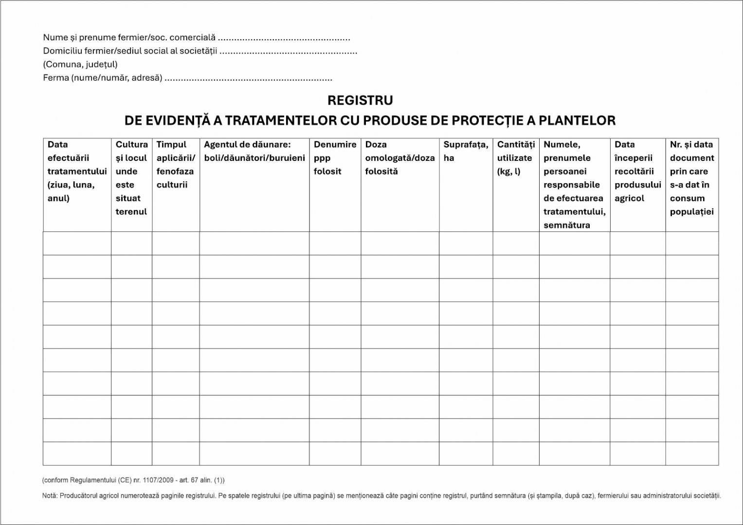 Comanda instant Registrul de evidenta a tratamentelor cu produse de protectia plantelor A4, 50 file, coperta cartonata